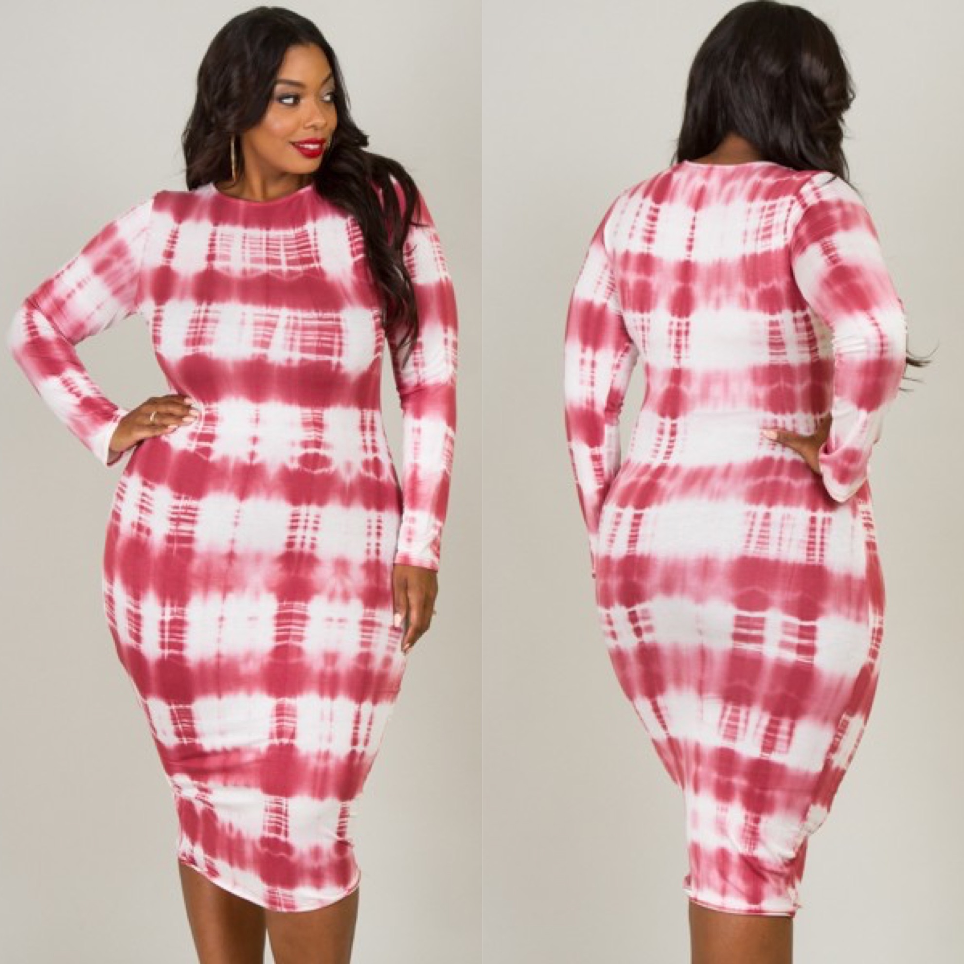 Dress up or down this Scoop neck, long sleeve midi bodycon dress